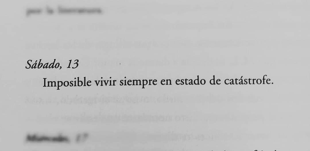 “Aquel que no consigue ponerse de acuerdo con la vida mientras vive, necesita una de sus manos para apartar un poco la desesperación causada por su destino – lo consigue muy imperfectamente -, pero con la otra puede anotar lo que ve bajo las ruinas, ya que ve otras cosas, y más cosas, que los demás; es un muerto viviente y el verdadero superviviente. Esto, suponiendo que no necesite las dos manos, y más manos que las que tiene, para luchar con la desesperación.”